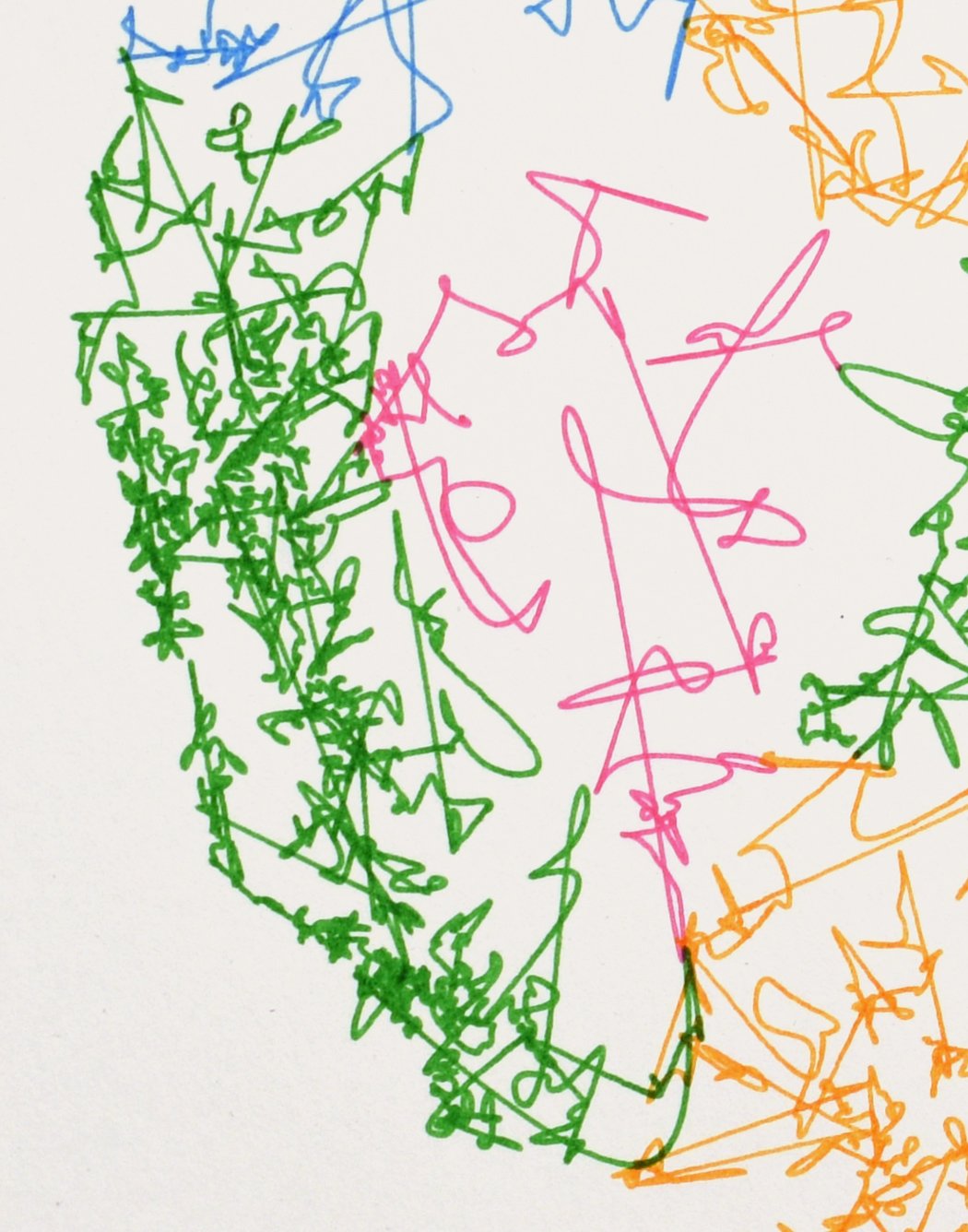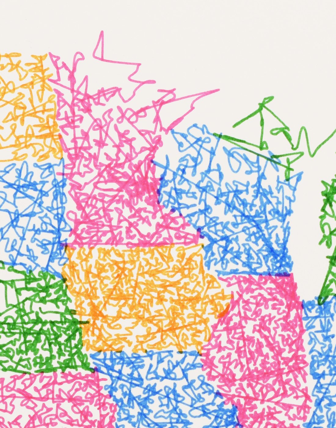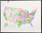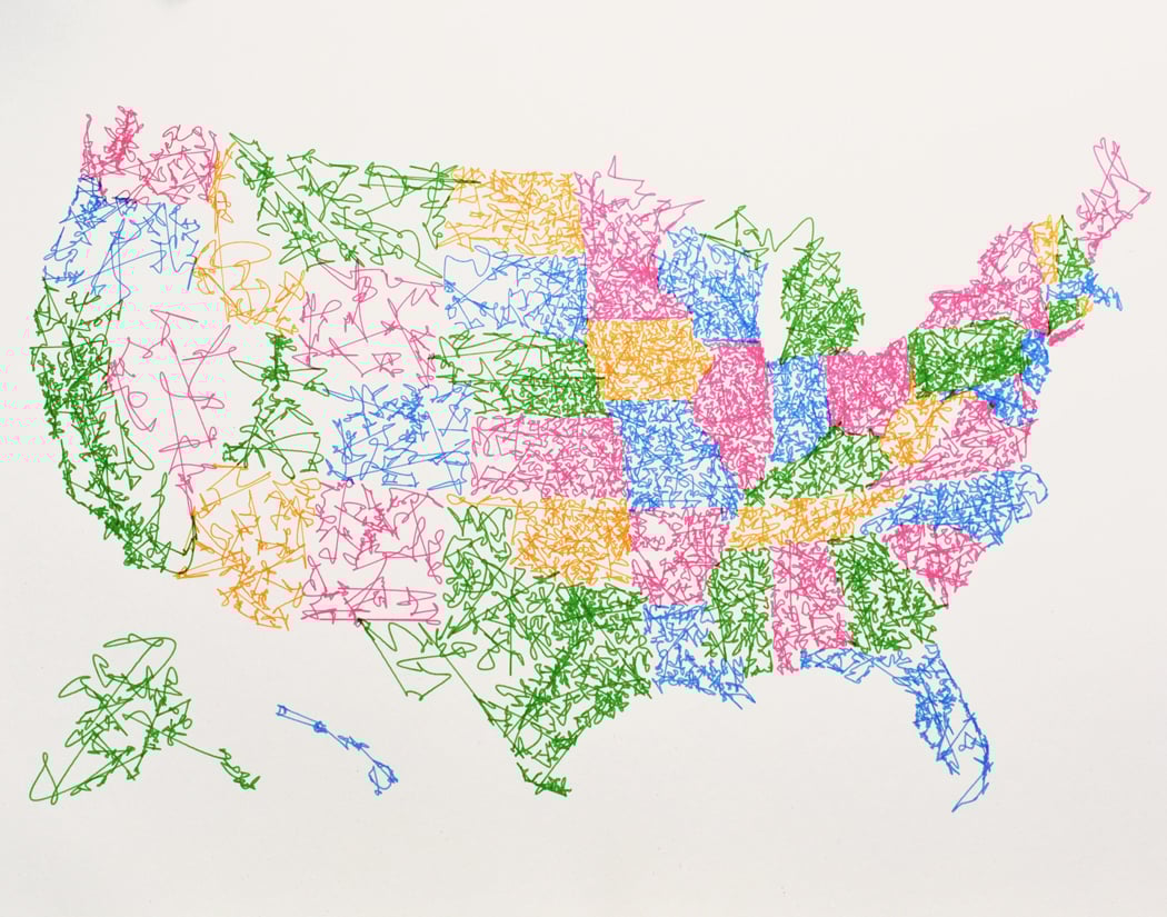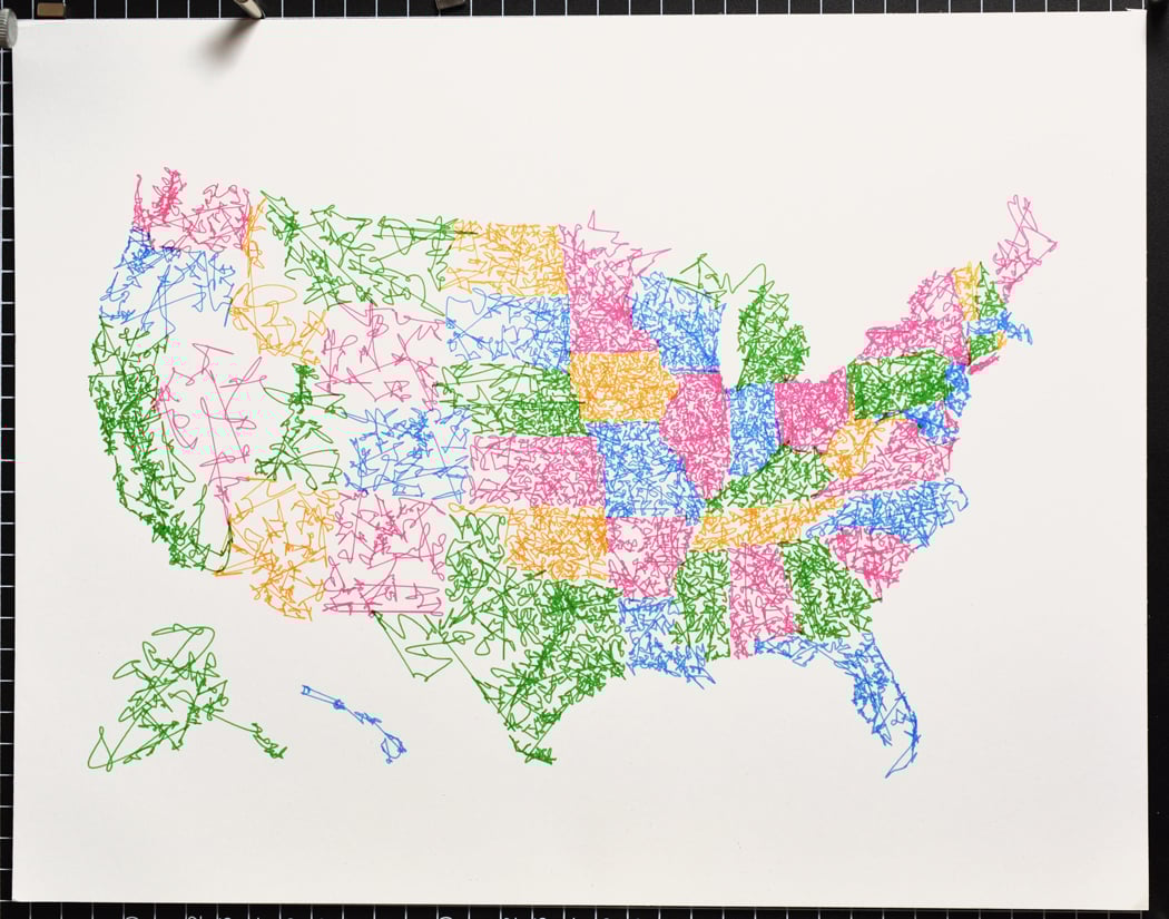 Smooth curves drawn connecting populated places in each state. Fineliner on 11 in. x 14 in heavyweight smooth white paper.
